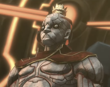 Kagebosh look like robotic demigods. Their body is white in color with red markings all across it, and they have a spinning, crown-like mechanism on top of their head. Unlike most demigods, their mouth lacks structural complexity and simply moves up and down during speech, further cementing their robotic nature. They wear a red shawl, a sash with red ribbons and red greaves.